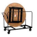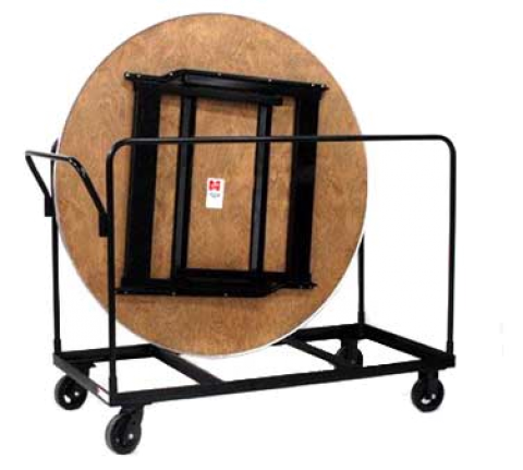Round Edge Table Truck, 1200 lb. capacity, 60" long, 30" wide, 48" high, welded angle iron frame with removable U-handles, holds up to 8 round/oval tables (for tables 60" dia.), four 6" solid rubber casters (2 swivel, 2 rigid), powdered coated finish, black