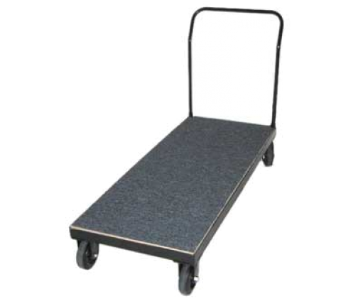 Deluxe Storage Table Truck, 1200 lb. capacity, 72" long, 24" wide, 39" high, welded angle iron frame with removable U-handle, platform constructed of plywood core covered by industrial grade carpet bolted to truck frame, holds up to 10 rectangular tables (for tables up to 24" wide and up to 72" long), four 6" solid rubber casters (2 swivel, 2 rigid), powdered coated finish, black