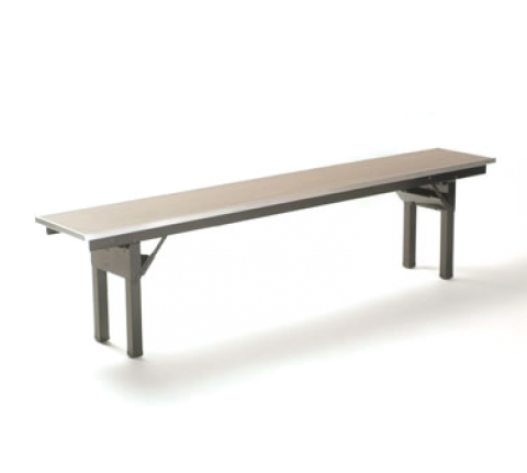 Folding Bench, 72" long, 12"wide, 18" high, plastic laminated 5/8" plywood top, 1-1/2" square steel tube powder coated legs