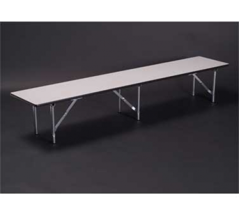 Standard Table Riser/Bar Top, rectangular top, single-deck, plastic laminated 5/8" plywood top (edge to be specified), 72" long, 14" wide, 12" high, black plastic glides std.