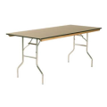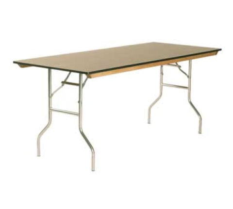 Standard Folding Table, rectangular top, plastic laminated 5/8" plywood top (edge to be specified), powder coated metal wishbone legs with full length wood runners, 96" long, 48" wide, 30" high, black plastic glides std.