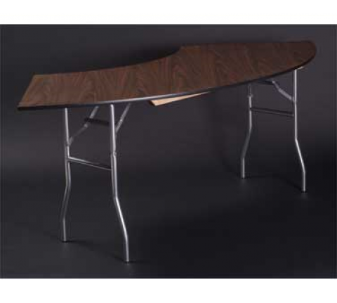 Standard Folding Table, 4 to circle crescent top, plastic laminated 5/8" plywood top (edge to be specified), powder coated metal wishbone legs with full length wood runners, 60" radius, 36" wide, 30" high, black plastic glides std.