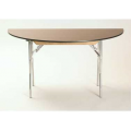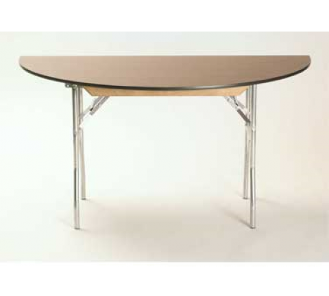 Standard Folding Table, half-round top, plastic laminated 5/8" plywood top (edge to be specified), powder coated metal wishbone legs with full length wood runners, 1/2 of 72" dia., 30" high, black plastic glides std.