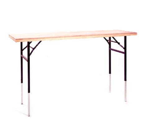 Merchandising/Display Table, 5/8" plywood top with flush pine edge, 1" square black enamel telescoping steel tube legs, 72" long, 24" wide, adjustable 30" to 42" high
