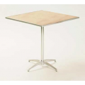 Standard Pedestal Table, square top, 5/8" plywood top (edge to be specified), chrome plated steel column with die cast aluminum base and mounting plate, 36" long, 36" wide, 42" high, chrome steel glides std.