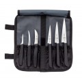 Carving Knife Set, 7-piece, includes: (1) 2" Thai fruit knife, (1) 2-1/2" Thai fruit knife, (1) 3-1/2", (1) 4" & (1) 5" Japanese Style carving knives, (1) 2-1/2" peeling knife, & (1) heavy duty storage roll, NSF