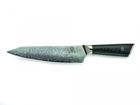 Chef's Knife, 8", G10 handle, super steel damascus blade, HRC 62, full tang