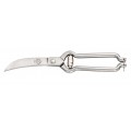 Poultry Shears, 9-1/2" overall length, fine toothed blade edge, safety lock, textured grip handles, hot forged stainless steel