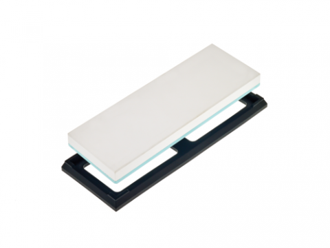 Premium Glass Sharpening Stone, 7-7/8" x 2-3/4" x 3/4" (stone only) size, 3000 grit combination, includes silicone base holder, premium grade corundum, glass base to keep stone flatter