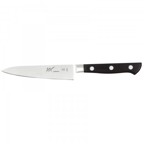 MX3® Petty Knife, 120mm (5"), one-piece, full tang, forged, 3-layer, Japanese VG-10 super-steel core blade, taper-ground edge, triple riveted, ergonomic Delrin® handles