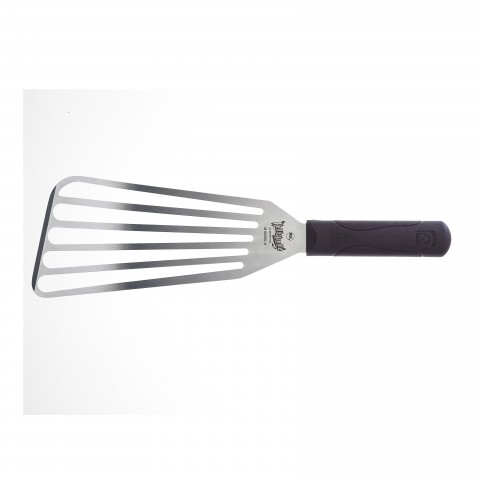 Hell's Handle® Fish Turner, 9" x 4" blade, 14" overall length, left-handed use, large, flexible, slotted, heat resistant up to 450°F, dual-textured finish on glass reinforced handle for extra grip/slip resistance, precision ground, stainless Japanese steel, NSF