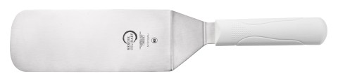 Millennia® Turner, 8"L x 3"W, 14-3/4" overall length, solid Japanese steel stainless steel blade, white molded polypropylene handle (for HACCP or dedicated use option), NSF