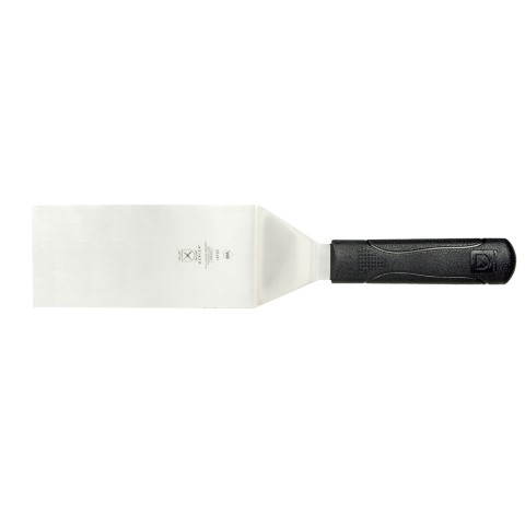 Millennia® Turner, 6"L x 3"W, 13-1/2" overall length, square edge, solid Japanese steel blade, molded polypropylene handle for an extra-sure grip, NSF
