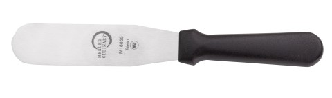 Spatula, 6"L x 1-1/2"W straight, 11" overall length, tapered ground, carded for retail display, dishwasher safe, molded slip-resistant black polypropylene handle, Japanese stainless steel blade, NSF