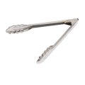 9.5" Utility tong, pull locking mechanism scalloped end, 18-0 stainless steel, flat spring