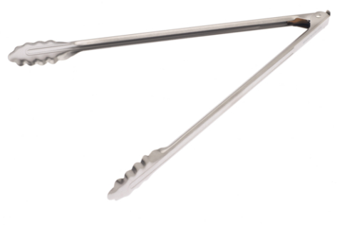 16" Utility tong, pull locking mechanism scalloped end, 18-0 stainless steel, flat spring