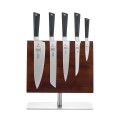 ZüM® Magnetic Board Set, 6-piece, includes (1) M30726 acacia magnetic board, (1) 8" chef's knife, (1) 8" wavy edge bread knife, (1) 7" fillet knife, (1) 6" stiff boning knife, (1) 3" paring knife, high-carbon, German steel blades, ergonomic POM handles, NSF
