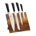 ZüM® Magnetic Board Set, 5 piece, includes: (1) acacia magnetic board, (1) forged 8" short bolster chef knife, (1) 6" wavy edge utility knife, (1) 3" paring knife, and (1) 8" wavy edge bread knife, high-carbon, German steel blades, ergonomic POM handles, NSF