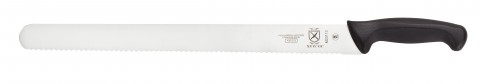 Millennia® Cake Slicer Knife, 16", wavy edge, stamped, high carbon, Japanese steel, black non-slip Santoprene® & polypropylene handle, with textured finger points and protective finger guard, NSF