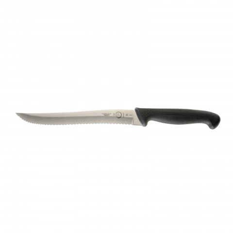 Millennia® Utility Knife, 7", wavy edge, stamped, high carbon, Japanese steel, black non-slip Santoprene® & polypropylene slim handle, with textured finger points and protective finger guard, NSF