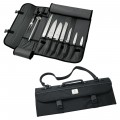 Mercer Cutlery Knife Case, 10 pocket, 21" x 9" x 2" closed, hard pvc lining, folds into box shape, full zippered compartment, card/ID holder, handle & shoulder strap, black (cutlery not included)
