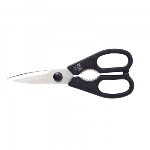 Mercer Cutlery Kitchen Shears, 8" overall length, stainless steel, polypropylene handles, 8" length, comes apart for easy cleaning, built-in bottle opener/nutcracker, packaged in plastic pouch with graphic insert, NSF