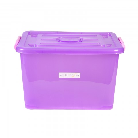 Allergen Safety Storage Tote, 10-2/3 gallon, top interior: 17-1/8" x 12-1/2", interior height: 10-3/4", bottom interior: 15-3/4" x 11-1/4", purple lid with locking tabs and recessed folding handle, purple translucent polyethylene body