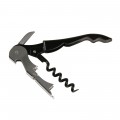 Waiter's Corkscrew, 4-3/4", non-stick coated 5 turn worm, double lever hinge, contoured finger grips, serrated edge knife, hardened steel, black handle