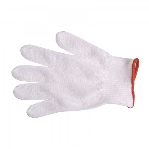 MercerGuard™ Cut Glove, Size S, 13 gauge, fits left or right hand, ultra-high molecular weight polyethylene reinforced knit construction, permanent antimicrobial protection, washable and bleach safe, FDA approved materials, ANSI level A4 cut protection, color-coded cuff to indicate size, white with red cuff, Made in USA