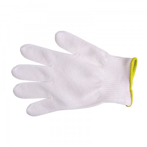 MercerGuard™ Cut Glove, Size XS, 13 gauge, fits left or right hand, ultra-high molecular weight polyethylene reinforced knit construction, permanent antimicrobial protection, washable and bleach safe, FDA approved materials, ANSI level A4 cut protection, color-coded cuff to indicate size, white with gold cuff, Made in USA
