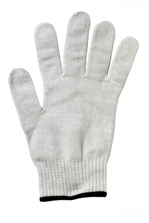 Millennia® Cut Glove, Size 1X, 10 gauge, fits left or right hand, washable and bleach safe, stainless steel reinforced construction, FDA approved materials, ANSI level A5 cut protection, color-coded cuff to indicate size, white with black cuff