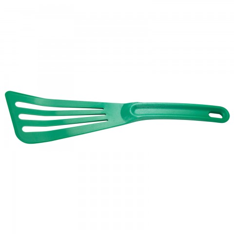 Hell's Tools® Spatula, 3-1/2" x 12" overall size, slotted, flexible blade, beveled edge, high temperature, impact resistant nylon rated to 430°F, green, NSF