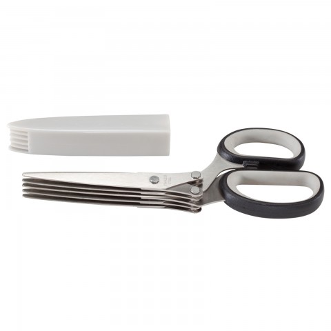 Herb Scissor, 7-3/5"L, 5 blades, black soft-grip handle with white inside, includes multi-use cover to protect blades and use as a cleaning tool, 18/8 stainless steel