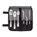 Basics Plating Set, 7-piece, includes: (1) M35143 petite saucer spoon, (1) M35140 7-7/8" solid spoon, (1) M35141 7-7/8" slotted spoon, (1) M35135 6-1/8" straight, (1) M35134 6-1/8" fine point curved tong, (1) M35136 6-1/2" offset tong & (1) M30920 heavy duty 6 compartment roll