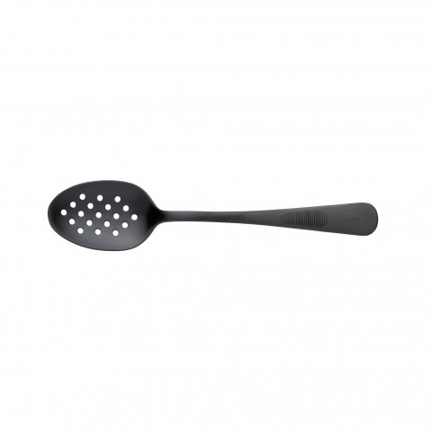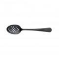 Plating Spoon, 7-7/8"L, perforated, deep well bowl with mirror finish, dual micro-serration for better grip and control, 18/8 stainless steel core, satin finish handle, black matte