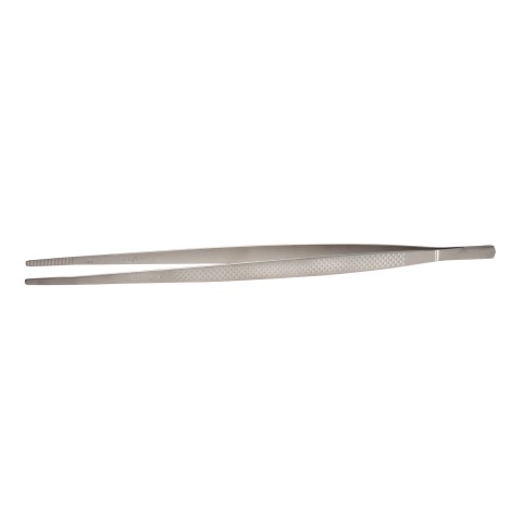 Precision Plus™ Tongs, 11-3/4"L, straight style, dual raised cross-hatch grips on outside for stability, serrated tips on inside for better grip, specially hardened 18/8 stainless steel, satin finish