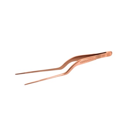Precision Plus™ Tongs, 6-1/2"L, offset style, dual raised cross-hatch grips on outside for stability, ultra-fine tips, serrated tips on inside for better grip, specially hardened 18/8 stainless steel core, satin finish, rose gold