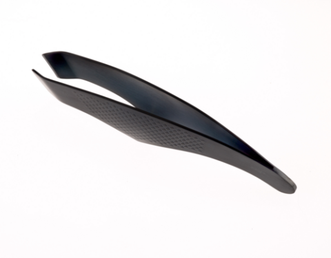 Precision Plus™ Fish Bone Tweezer, 5-5/8", raised cross-hatch grips, beveled interior edges, tempered stainless steel, black finish