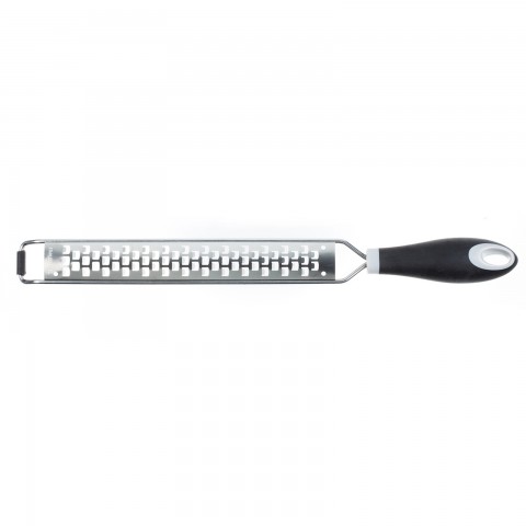 MercerGrates™ Grater, 8-7/8" x 1-3/16" blade, 15" overall length, extra coarse-narrow, 18/8 stainless steel blades, rounded Santoprene® and polypropylene handles, handle hole for hanging, protective polyethylene cover