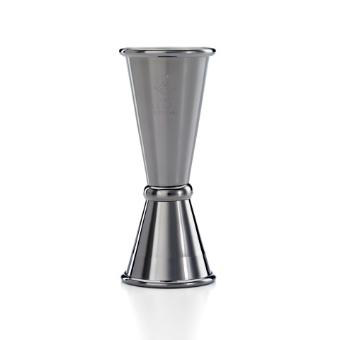 Barfly® Japanese Style Jigger, 1 oz. & 1-1/2 oz., with internal marking lines, 18/8 stainless steel core, gun metal black-plated finish