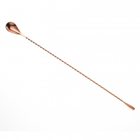 Barfly® Classic Bar Spoon, 15-3/4" (40 cm), weighted teardrop shaped end, twisted stem, one-piece, 18/8 stainless steel, copper-plated finish