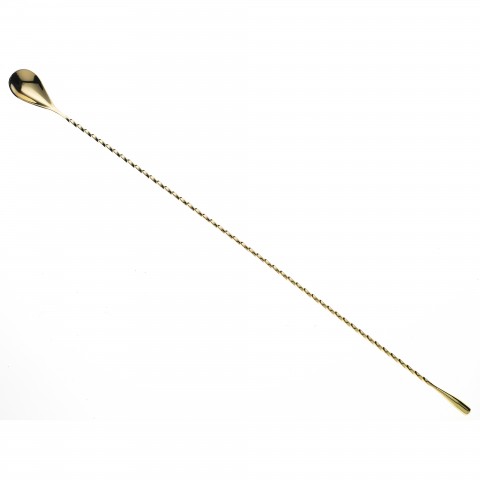 Barfly® Classic Bar Spoon, 19-5/8" (50 cm), weighted teardrop shaped end, twisted stem, one-piece, 18/8 stainless steel, gold-plated finish