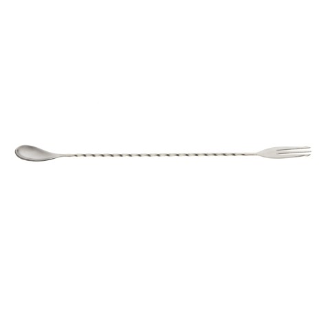 Barfly® Bar Spoon, 12-3/8", (31.5 cm), 3-tine fork end, twisted stem, one-piece, 18/8 stainless steel