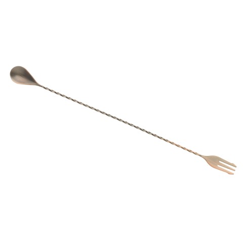 Barfly® Bar Spoon, 15-3/4", (40 cm), 3-tine fork end, twisted stem, one-piece, 18/8 stainless steel core, antique copper-plated finish