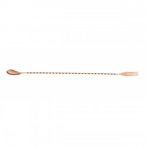 Barfly® Bar Spoon, 15-3/4", (40 cm), 3-tine fork end, twisted stem, one-piece, 18/8 stainless steel, copper-plated finish