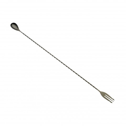 Barfly® Bar Spoon, 19-5/8", (50 cm), 3-tine fork end, twisted stem, one-piece, 18/8 stainless steel core, gun metal black finish