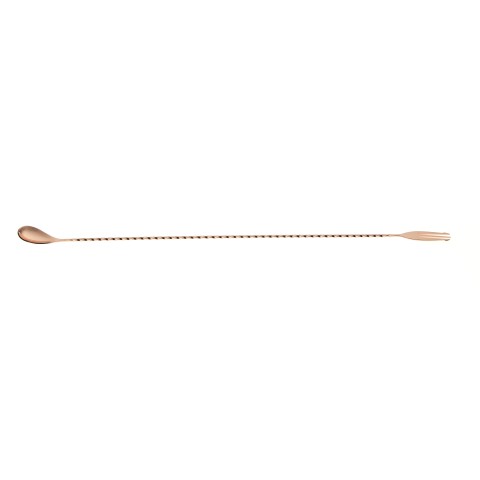 Barfly® Bar Spoon, 19-5/8", (50 cm), 3-tine fork end, twisted stem, one-piece, 18/8 stainless steel, copper-plated finish