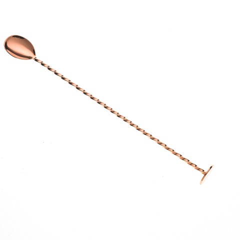 Barfly® Bar Spoon, with muddler, 11-13/16" (30 cm), flat-top end, twisted stem, one-piece, 18/8 stainless steel, copper-plated finish