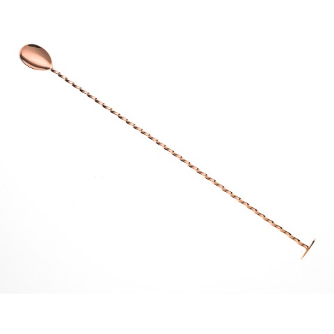 Barfly® Bar Spoon, with muddler, 15-3/4" (40 cm), flat-top end, twisted stem, one-piece, 18/8 stainless steel, copper-plated finish