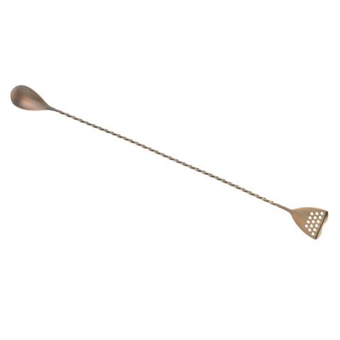 Barfly® Bar Spoon, 15-3/4" (40 cm), strainer end, twisted stem, one-piece, 18/8 stainless steel core, antique copper-plated finish